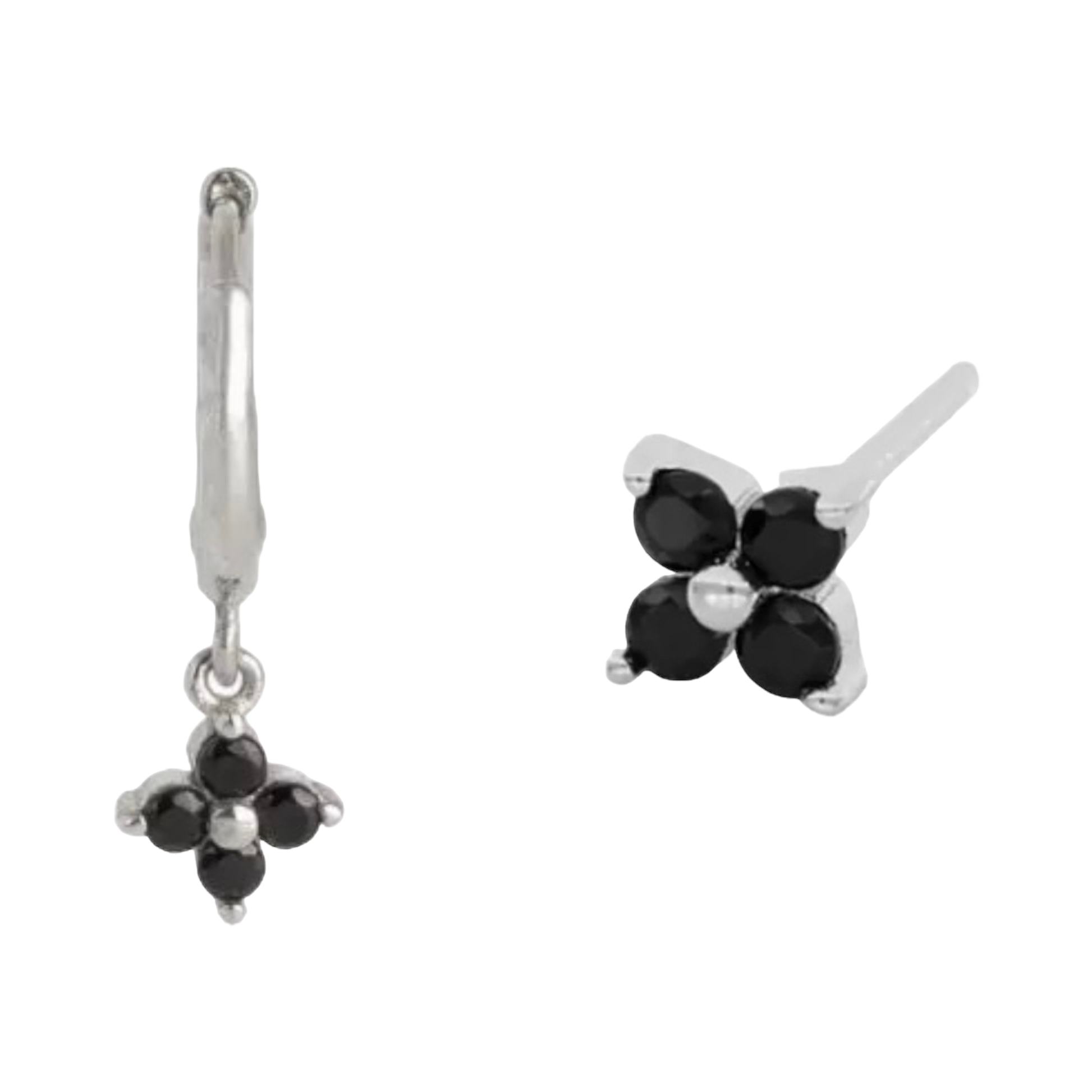 - Arete de plata.925 + baño de rodio y zirconia negra.