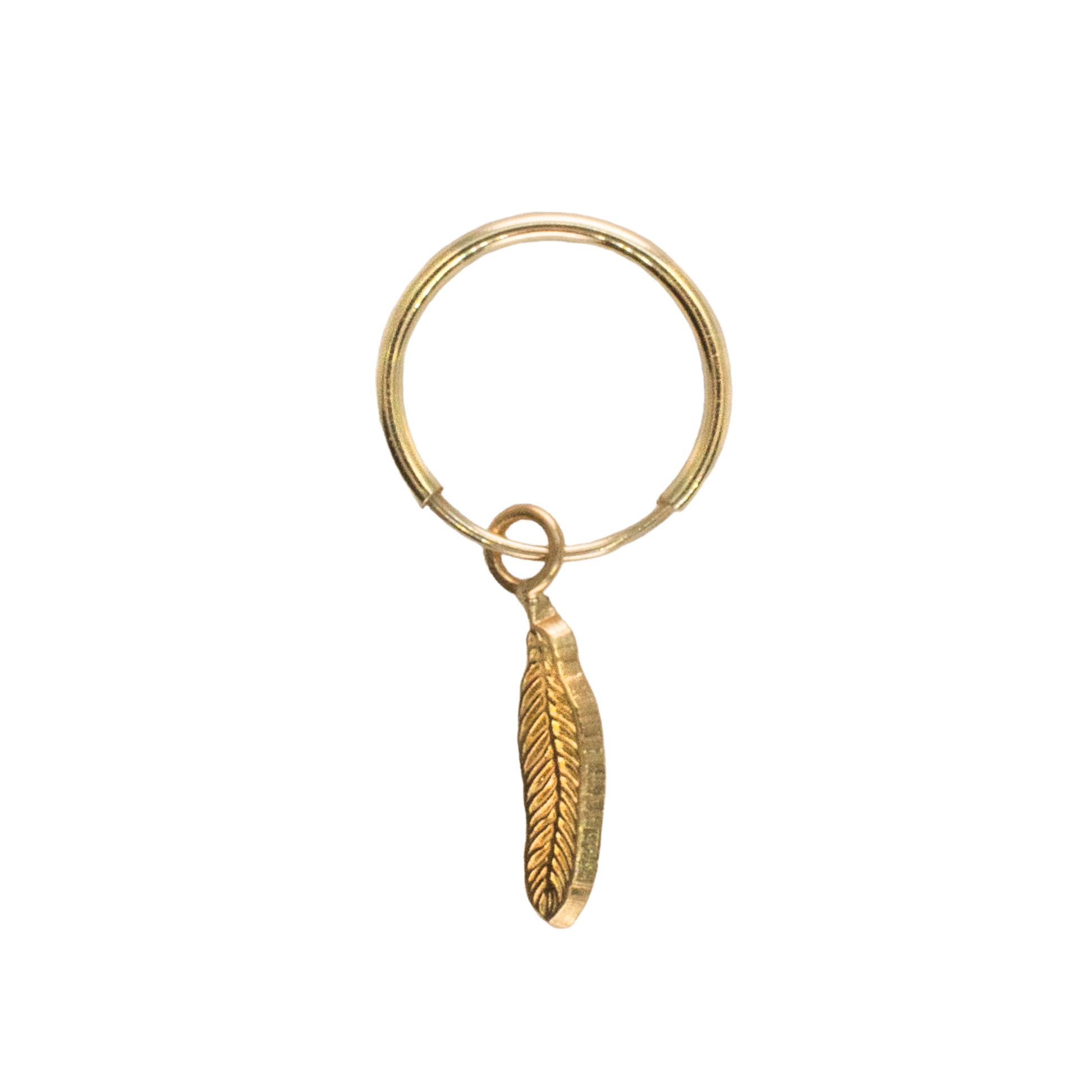 Arracada de oro 10 k con 10 mm de diametro y dije de oro 10 k en forma de pluma