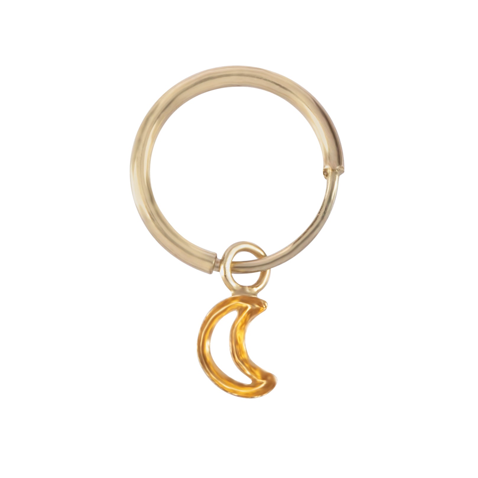 Arracada de oro 10 k con 10 mm de diametro y dije de oro 10 k en forma de luna hueca