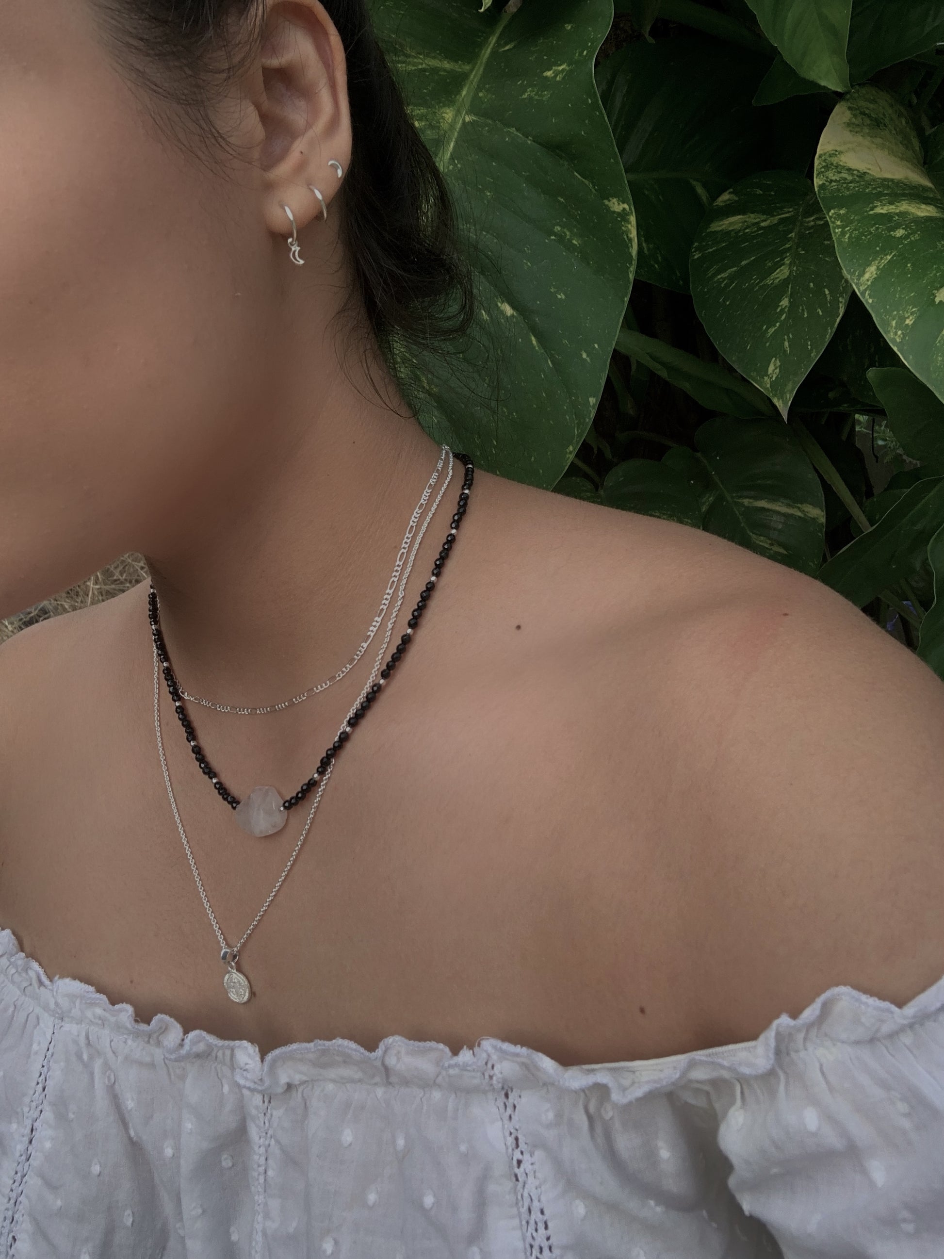 Collar de ágatas naturales 3mm con cuentas de plata.925 y Cuarzo Rosa