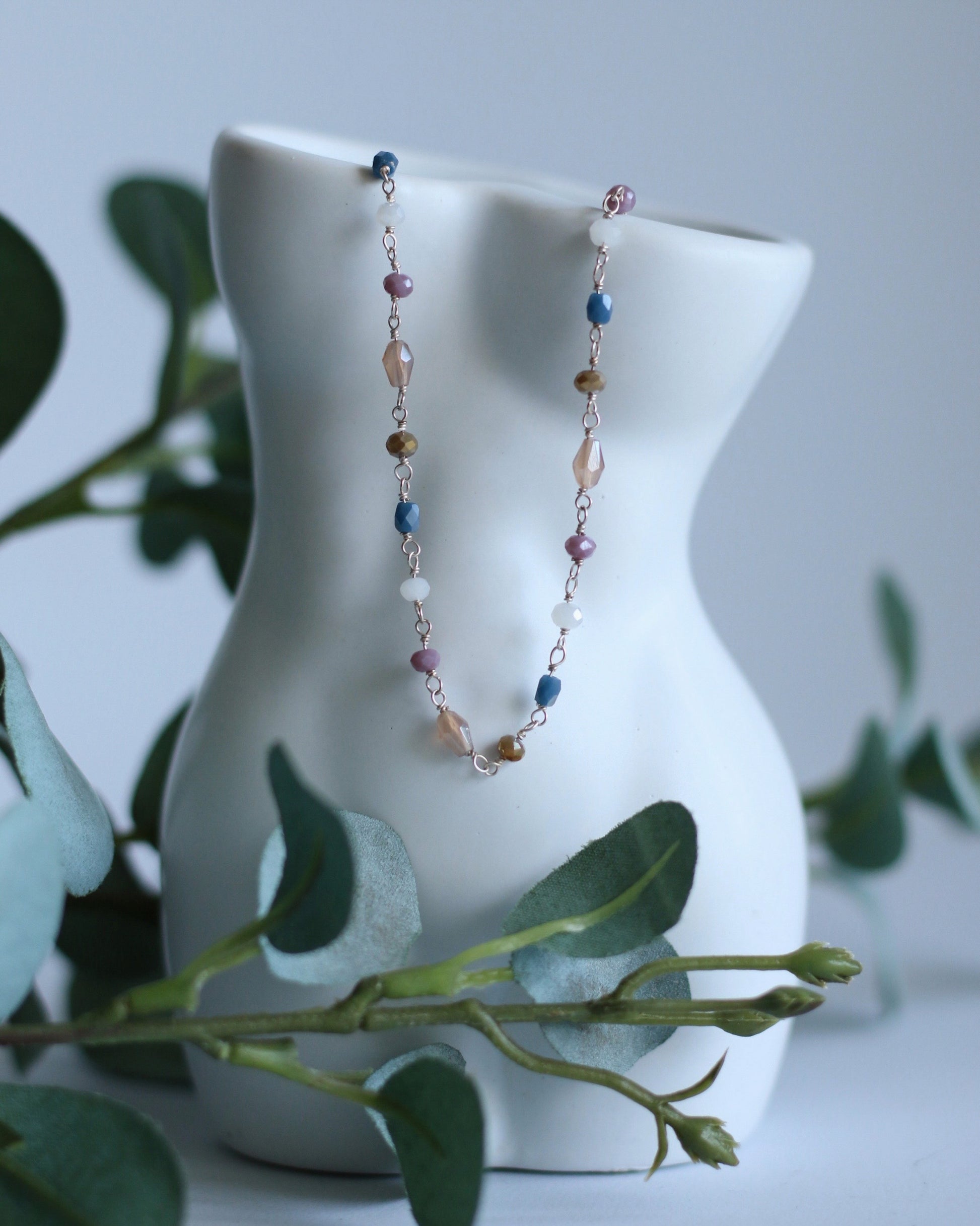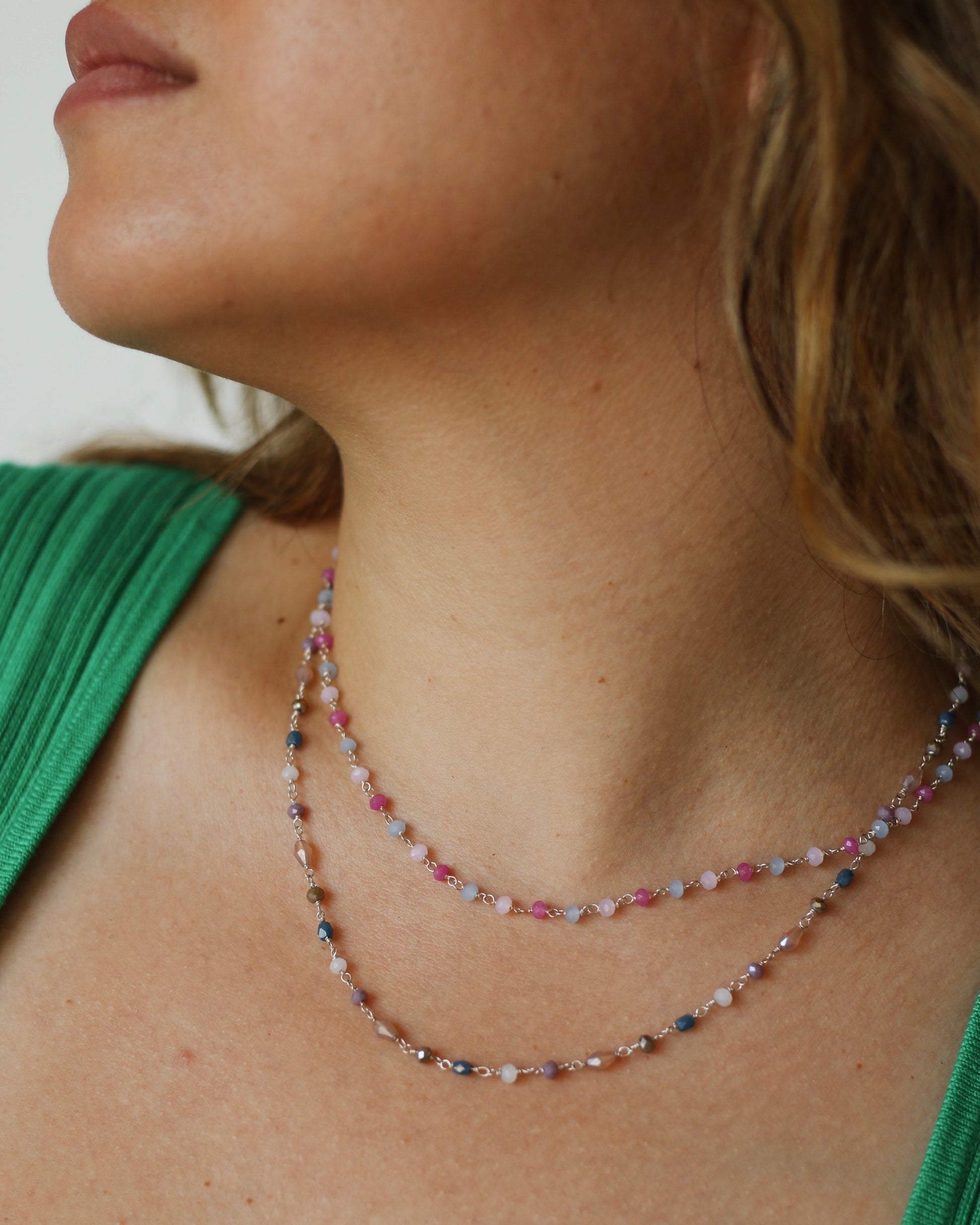 Collar de piedras mixtas naturales 3mm con cadena de plata.925