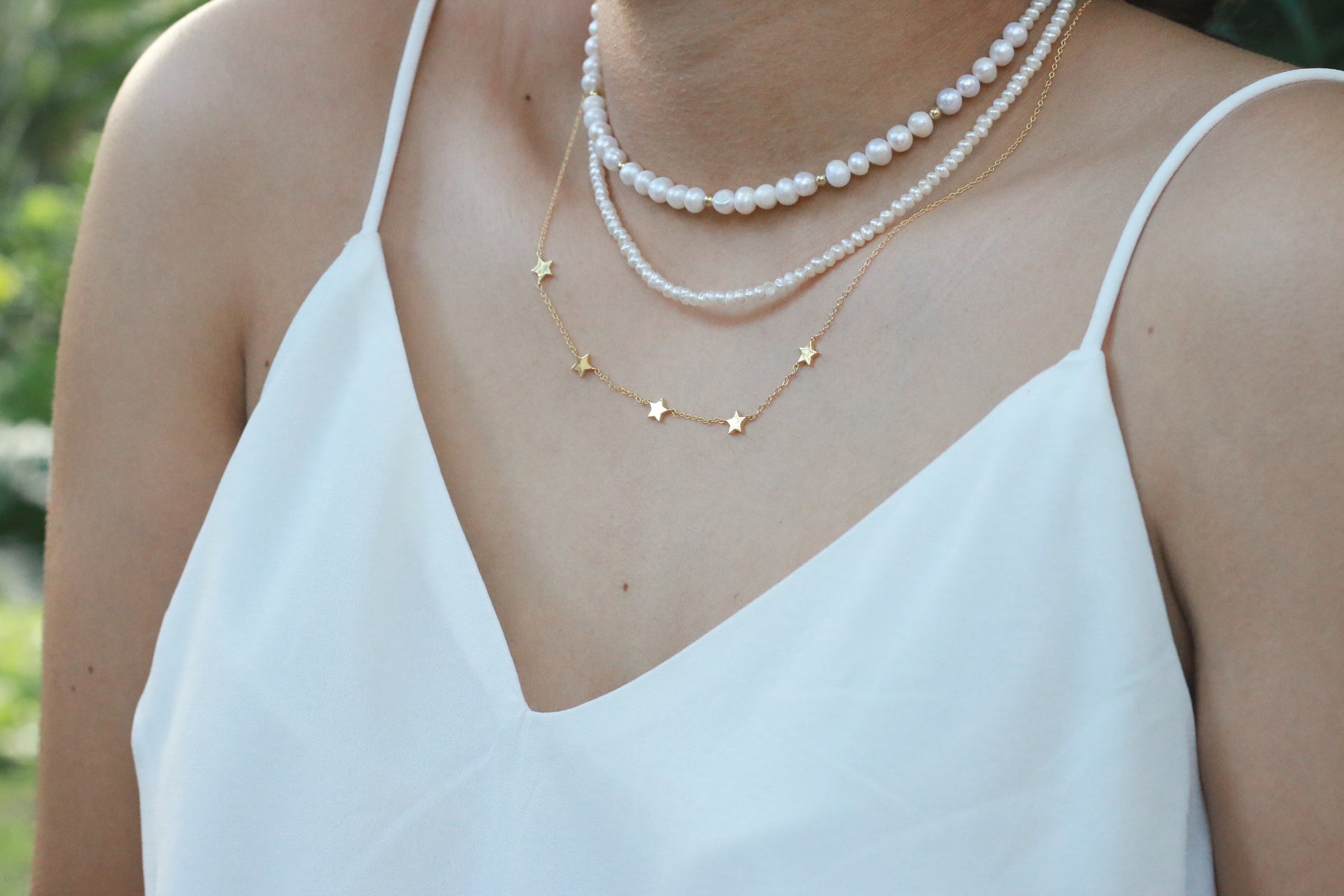 Collar de perlas naturales 3mm + perlas naturales (2mm) con broche en T y cuentas de plata.925 con baño de oro 18k.