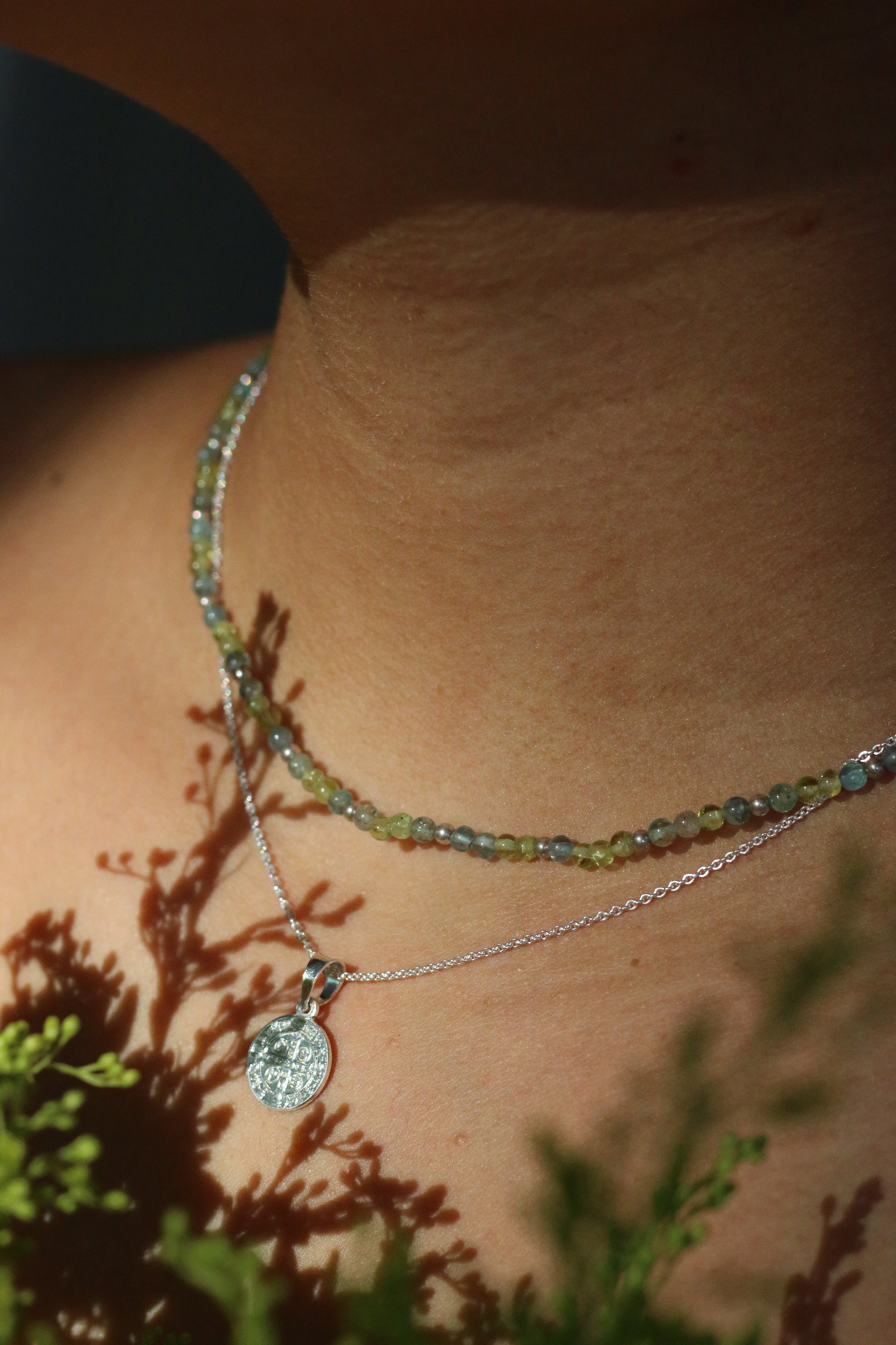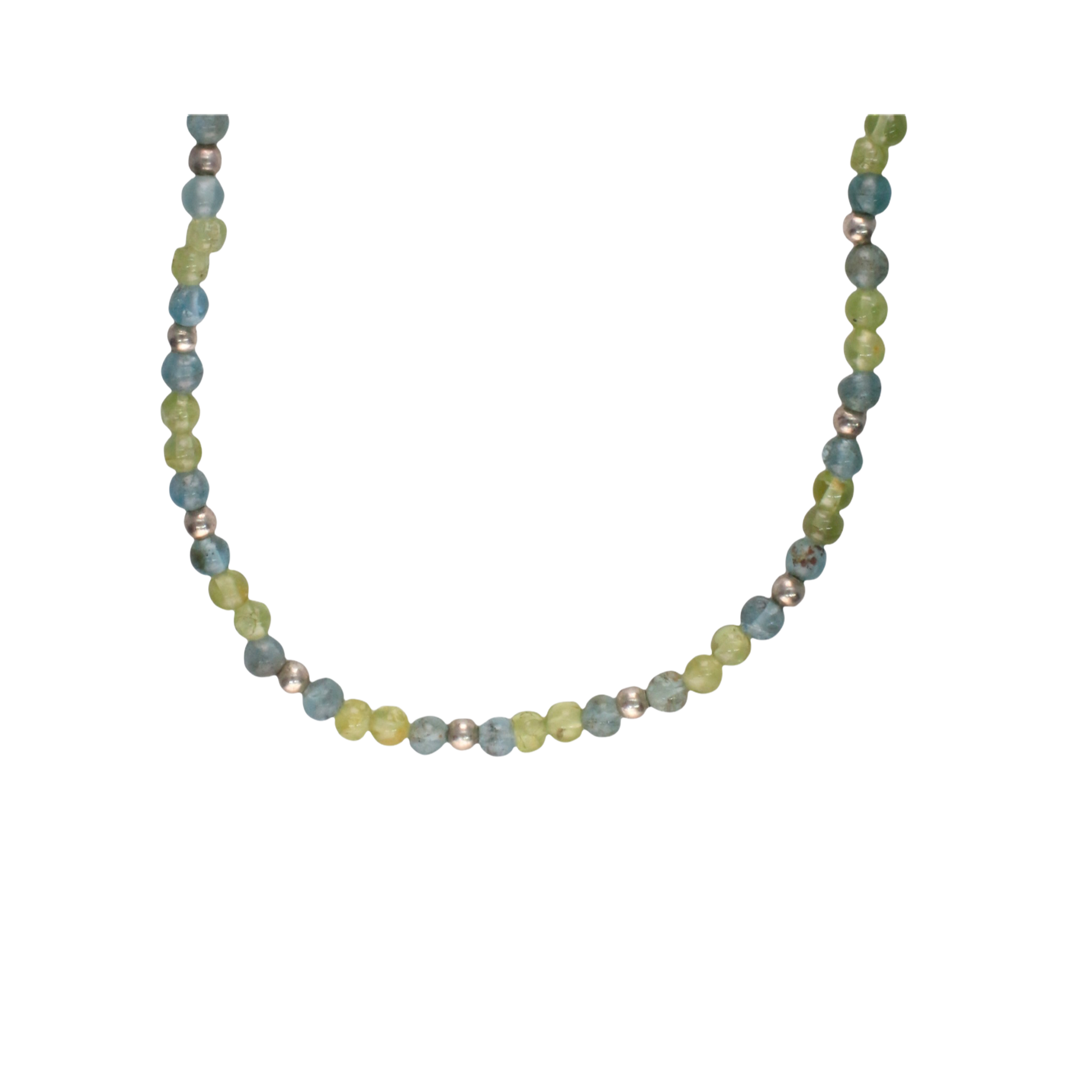 Collar de agua marinas naturales 3mm con cuentas de plata.925