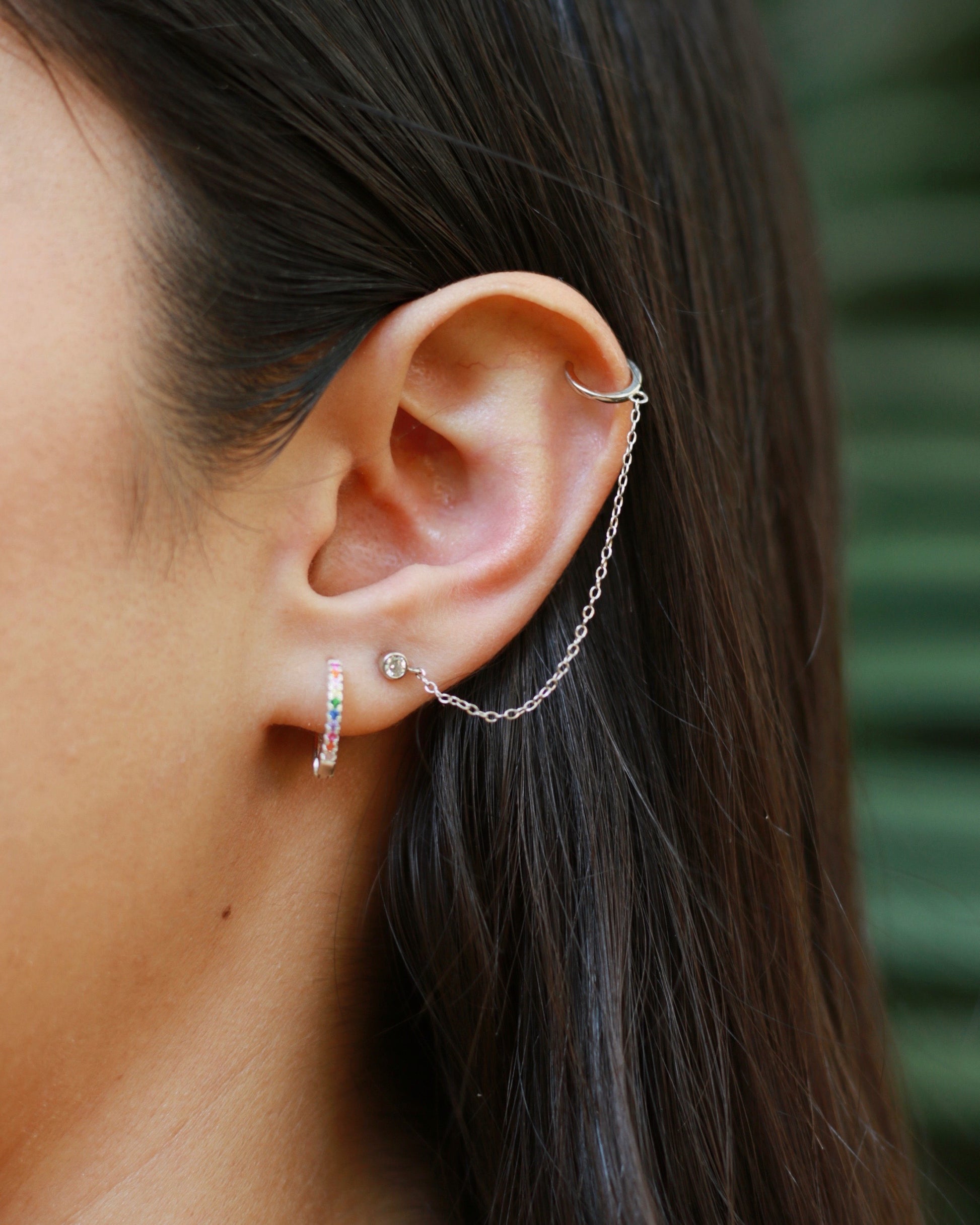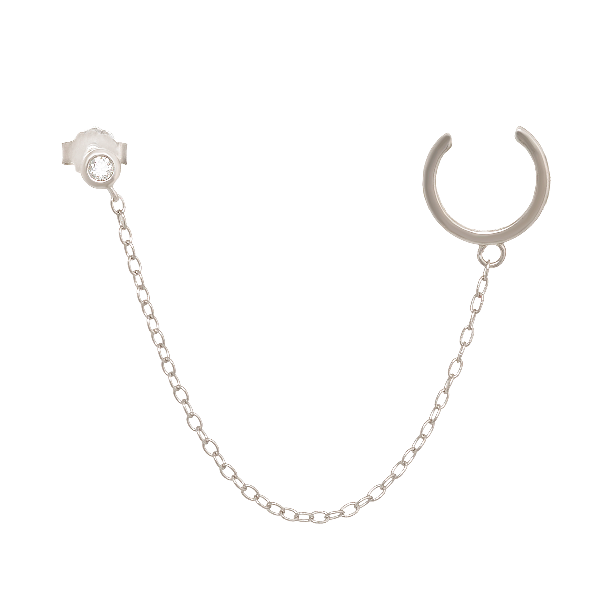Arete plata.925 con extensión de cadena 5 cm + Earcuff(arete simulador).