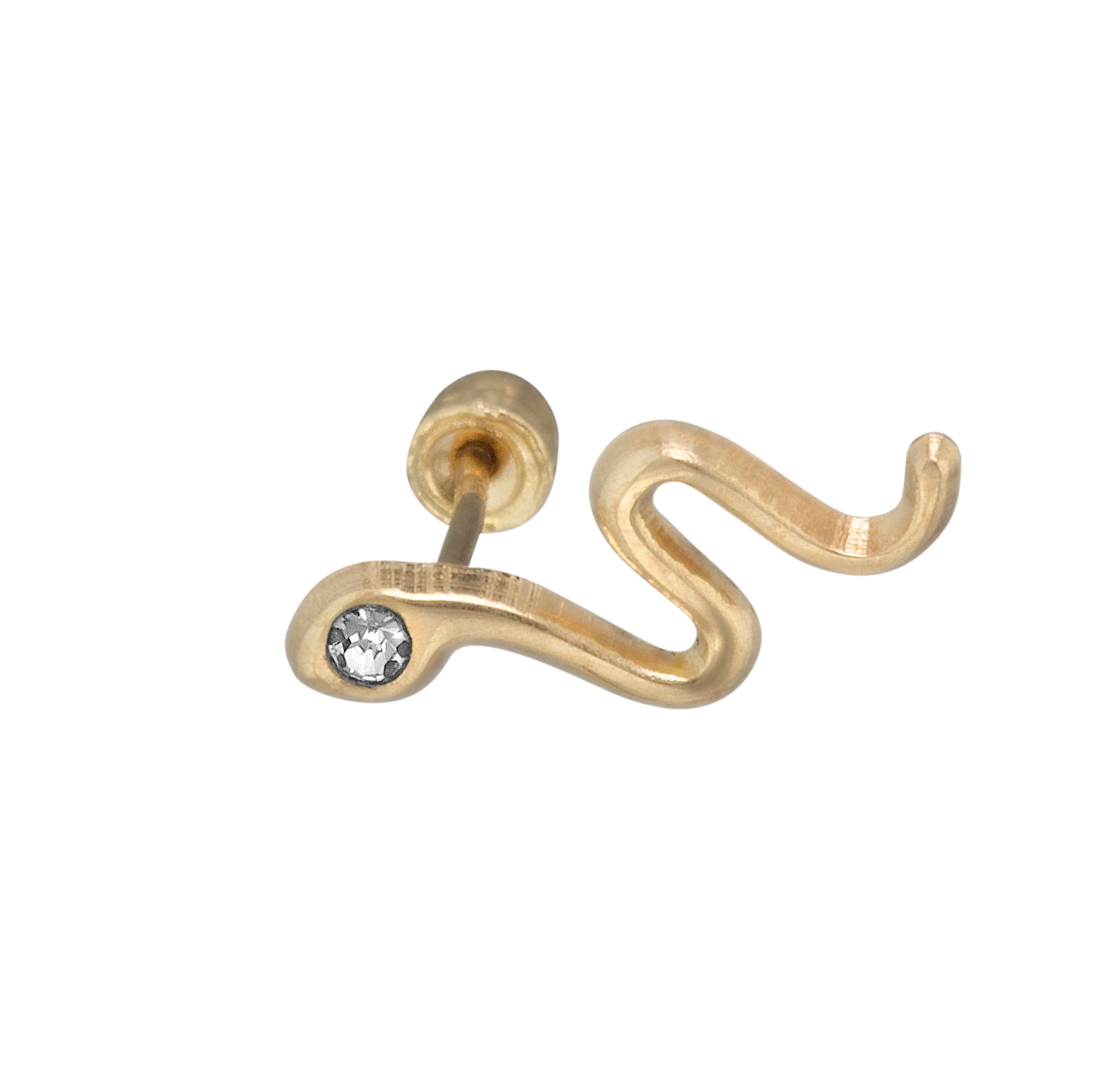 Broquel de oro 10k en forma de serpiente con 1 zirconia.