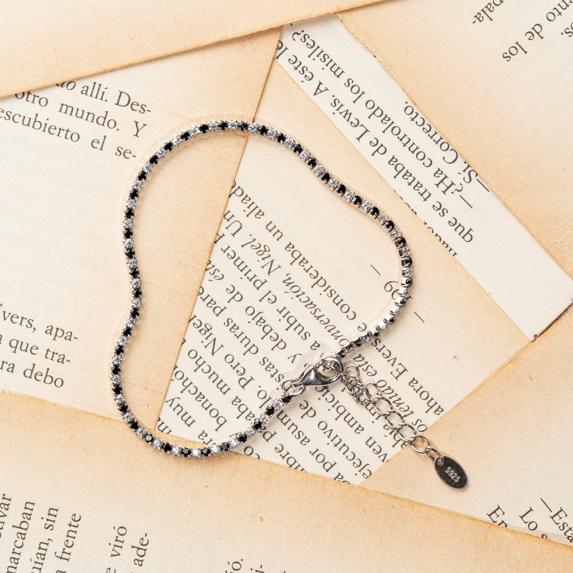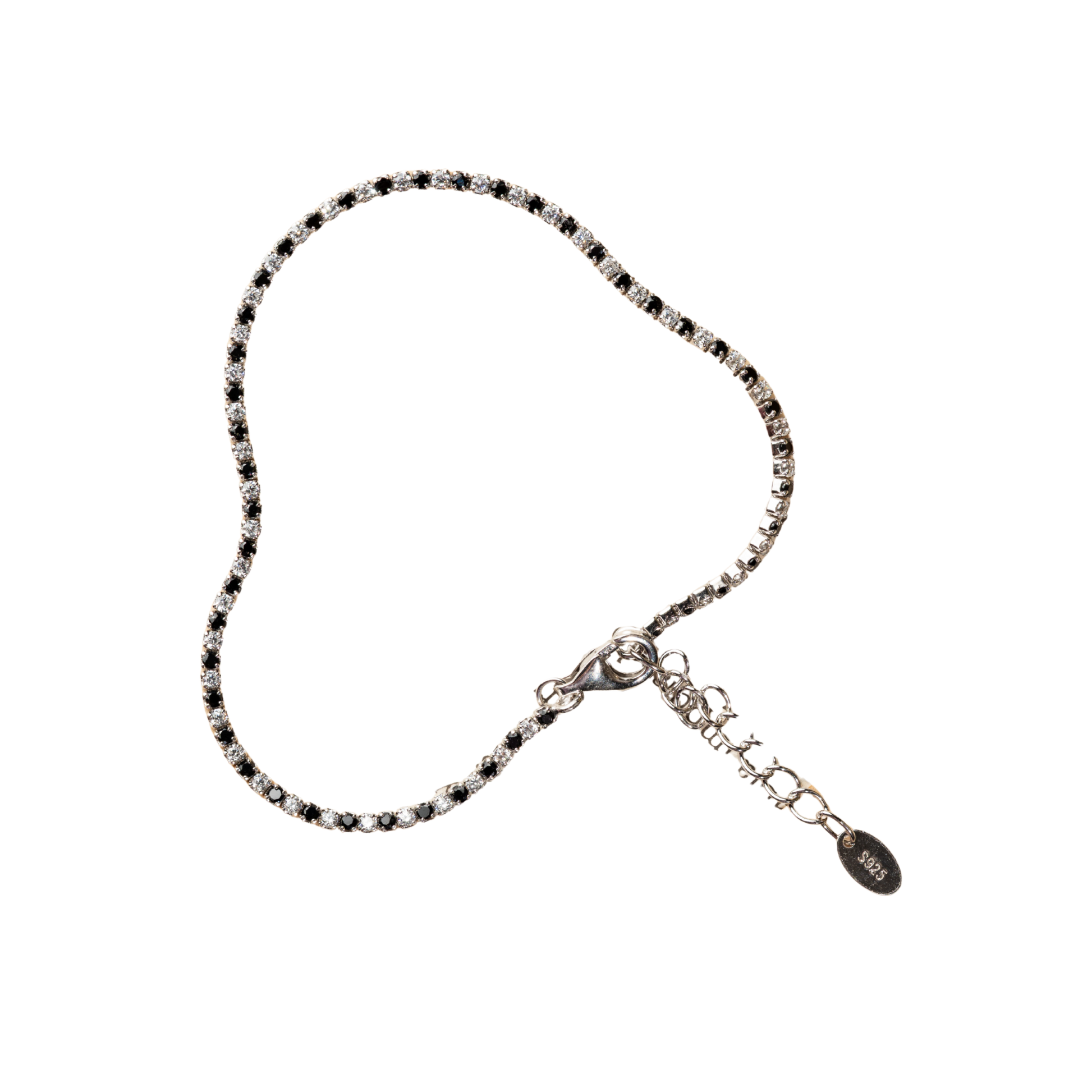 Pulsera de plata.925 con 17 cm+ 3 cm extensión + zirconias negras y blancas de alta calidad + baño de rodio